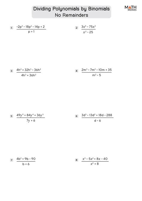 Dividing Polynomials By Binomials Worksheet. Dividing polynomials by binomials is a great way to have your. Web divide a polynomial by a monomial.