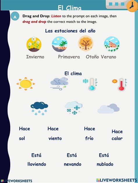 El clima worksheets and online exercises. Español como lengua extranjera (ele) grade/level: One simple worksheet where students.