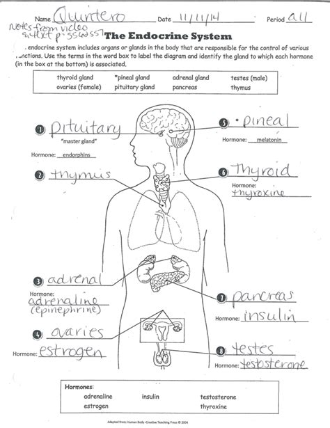 The Endocrine System Quiz Worksheet Answers — from db-excel.com