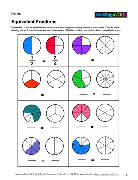 Web equivalent fractions worksheets and online activities. Examine the models to figure out each pair of equivalent fractions. Each geometric shape on this third grade math worksheet is divided into equal parts.
