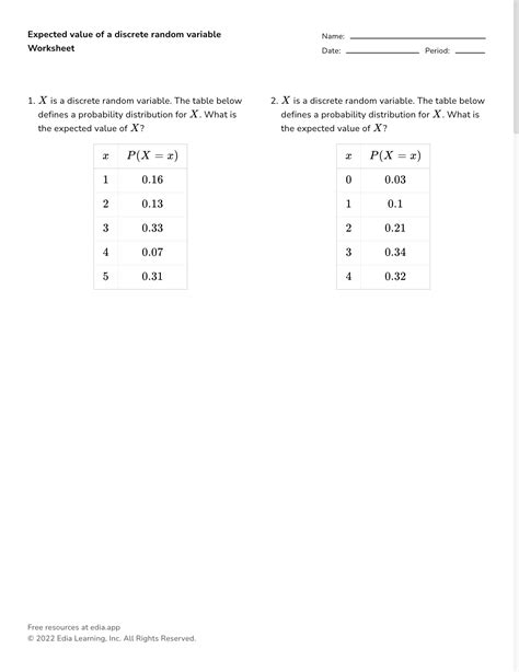 Web Expected Value Worksheet Find The Expected Value Using The Information In Each Table.